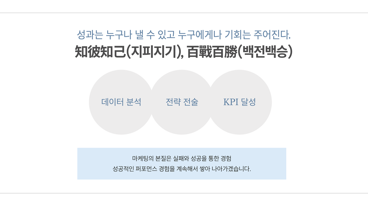 1. 타겟군별로 소재 분리운영 3가지 전략을 통해 효과측정→ 소재별 테스트실시 효율 중심 운영