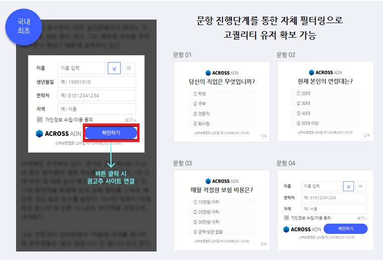 그리고 보험, 창업 등 DB업종의 경우 이렇게 질문/설문을 통해 2차 마케팅이 가능한 텍스트 배너와,