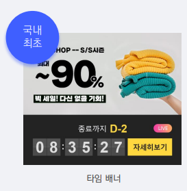 저같은 경우에 이런 배너에 많이 혹하는 편인데요, 짧은 기간 할인 등을 진행하는 경우에 아주 효과적이겠죠?