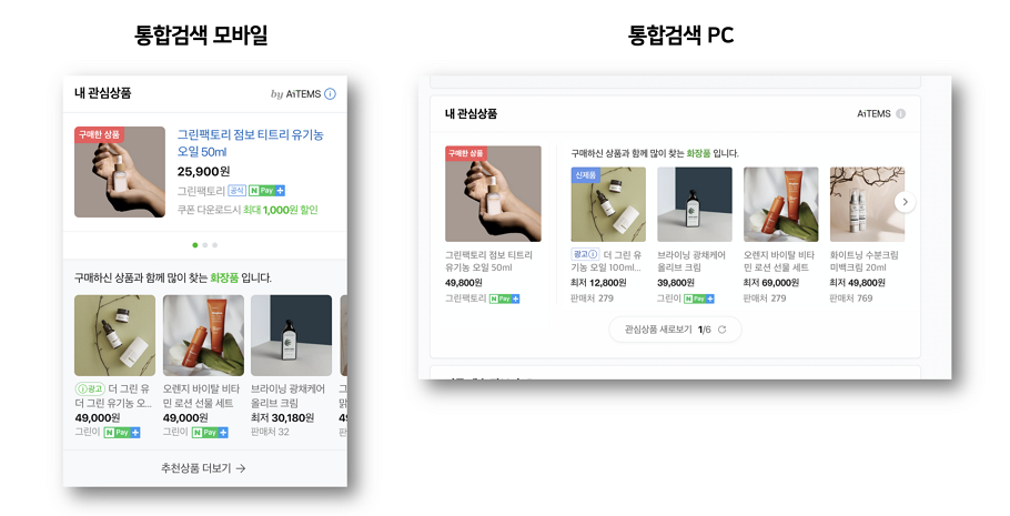 네이버 통합검색 및 네이버 쇼핑검색에 노출되는 ‘내 관심상품’ 영역에 쇼핑검색광고가 1개씩 추가됩니다.