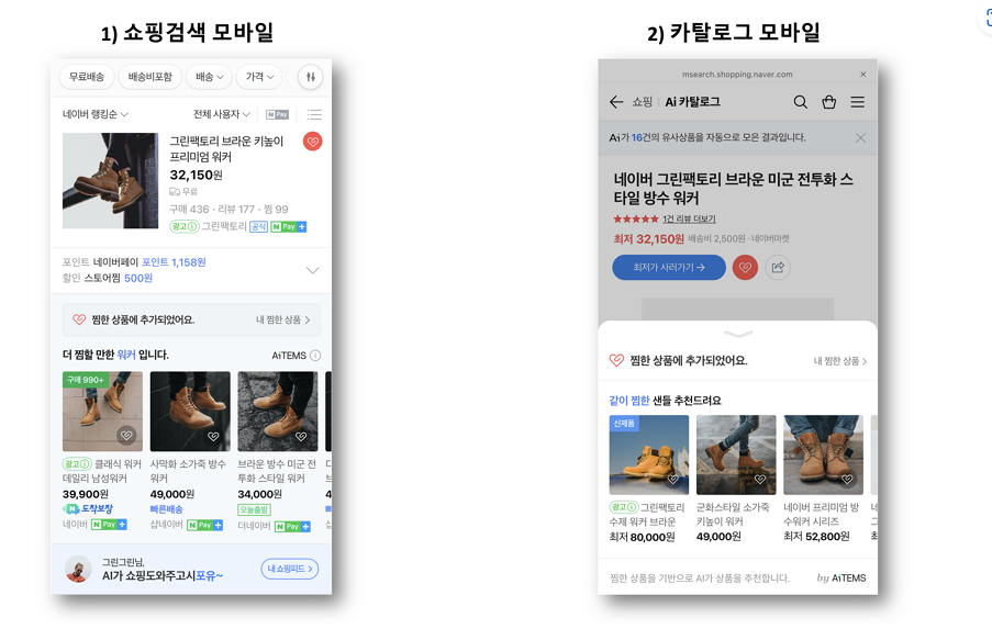 네이버 쇼핑검색에서 상품 ‘찜 버튼’ 및 카탈로그 내에서